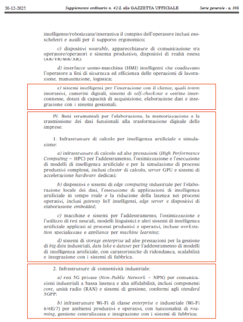 a) beni materiali e immateriali strumentali nuovi compresi, rispettivamente, negli elenchi di cui agli allegati IV e V (ndr sugli allegati è stata fatta profonda integrazione delle categorie di beni ammissibili, si veda la fine dell’articolo per i dettagli) annessi alla presente legge, interconnessi al sistema